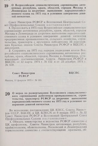 Главная Собрание законов и распоряжений правительства РСФСР и СССР Собрание законов и распоряжений Рабоче-Крестьянского Правительства ... Собрание постановлений правительства РСФСР за 1975 г. № 1-22 Документы Постановление Совета Министров РСФСР и Всесоюзного Центрального Сов...