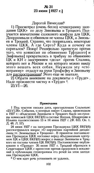 Письмо И.В.Сталина В.М.Молотову. 23 июня [1927 г.] // РЦХИДНИ. Ф. 558, оп. 1, д. 5388.