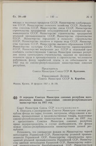 Собрание постановлений правительства СССР за 1957 г. № 1-16. — М.: Госюриздат, б. г.