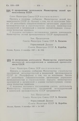 Постановление Совета Министров СССР. О прекращении деятельности Министерства лесной промышленности СССР. 6 сентября 1957 г. № 1082