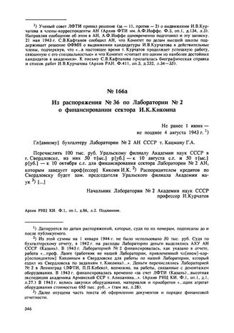 Из распоряжения № 36 по Лаборатории № 2 о финансировании сектора И.К. Кикоина. Не ранее 1 июня- не позднее 4 августа 1943 г.