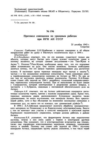 Протокол совещания по урановым работам при ИГН АН СССР. 25 декабря ...