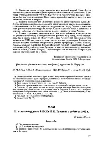 Атомный проект СССР: Док. и материалы в 3 т. Т. I в 2 ч. 1938-1945. Ч. 2. — М.: Изд-во МФТИ, 2002.
