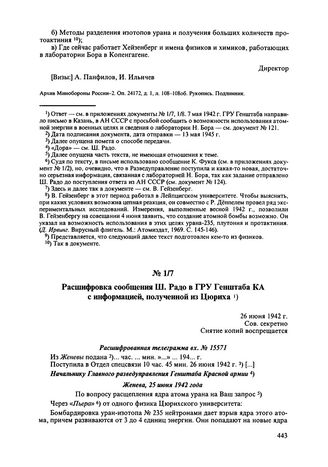 Расшифровка сообщения Ш. Радо в ГРУ Генштаба КА с информацией, полу...