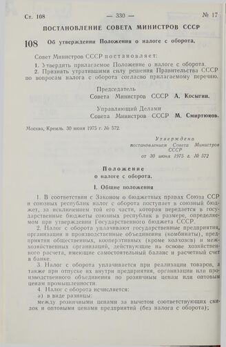 Постановление Совета Министров СССР. Об утверждении Положения о налоге с оборота. 30 июня 1975 г. № 572