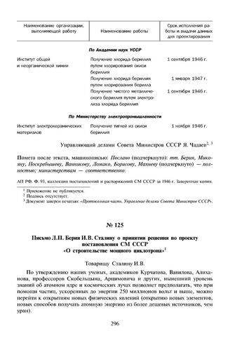 Письмо Л.П. Берия И.В. Сталину о принятии решения по проекту постановления СМ СССР «О строительстве мощного циклотрона». 13 августа 1946 г. // АП РФ. Ф. 93, д. 99/46, л. 30-31. Подлинник.