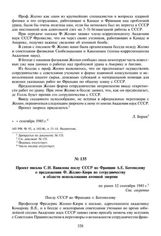 Главная Атомный проект СССР Атомный проект СССР. Т. II в 7 кн. Атомная бомба. 1945-1954. Кн. 2 Документы Проект письма С.И. Вавилова послу СССР во Франции А.Е. Богомолову о...