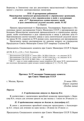Протокол № 97 заседания Специального комитета при Совете Министров СССР. 21 июня 1950 г.