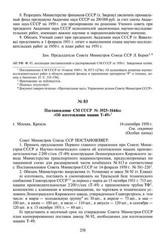 Постановление СМ СССР № 3925-1644сс «Об изготовлении машин Т-49». 1...