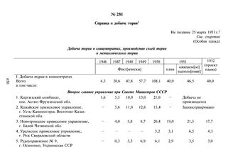 Справка о добыче тория. Не позднее 25 марта 1951 г. // АП РФ. Ф. 93, д. 1/51, л. 166-167. Подлинник.