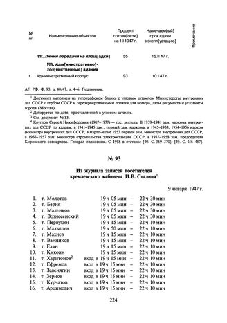 Из журнала записей посетителей кремлевского кабинета И.В. Сталина. ...