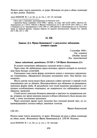 Записка Д.А. Франк-Каменецкого о результатах наблюдения атомного вз...