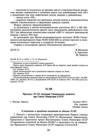 Протокол № 115 заседания Специального комитета при Совете Министров СССР. 30 июля 1951 г. // АП РФ. Ф.93, д. 2/51, л. 176-178. Подлинник.