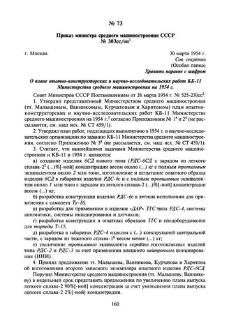 Приказ министра среднего машиностроения СССР № 303cc/оп. 30 марта 1954 г.