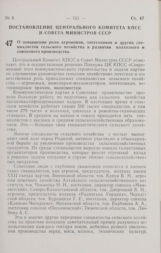Постановление Центрального Комитета КПСС и Совета Министров СССР. О повышении роли агрономов, зоотехников и других специалистов сельского хозяйства в развитии колхозного и совхозного производства. 12 апреля 1962 г. № 345