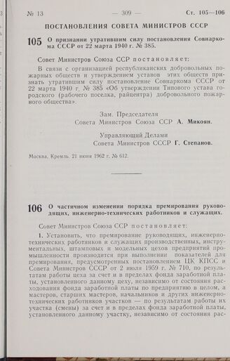 Собрание постановлений правительства СССР за 1962 г. № 1-21. — М.: Госюриздат, б. г.