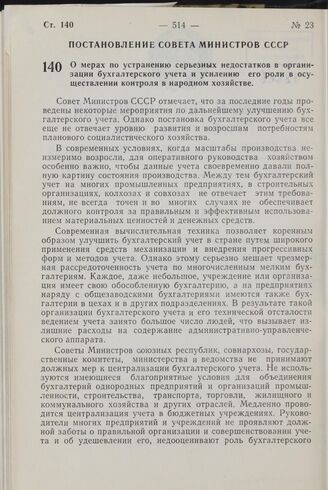 Постановление Совета Министров СССР. О мерах по устранению серьезных недостатков в организации бухгалтерского учета и усилению его роли в осуществлении контроля в народном хозяйстве. 6 ноября 1964 г. № 923