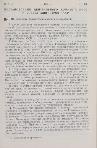 Постановление Центрального Комитета КПСС и Совета Министров СССР. Об оказании финансовой помощи колхозам. 1 апреля 1965 г. № 259