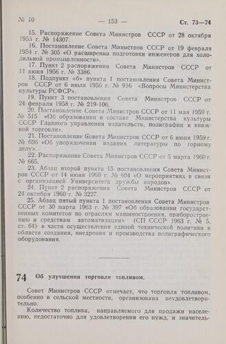Постановление Совета Министров СССР. Об улучшении торговли топливом. 3 апреля 1965 г. № 248