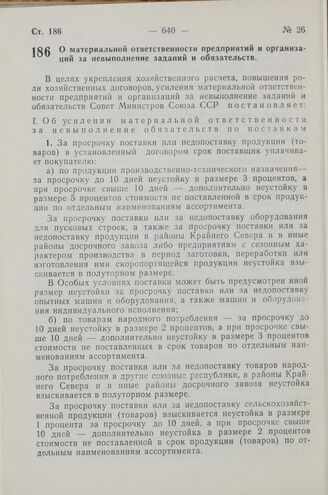 Постановление Совета Министров СССР. О материальной ответственности предприятий и организаций за невыполнение заданий и обязательств. 27 октября 1967 г. № 988