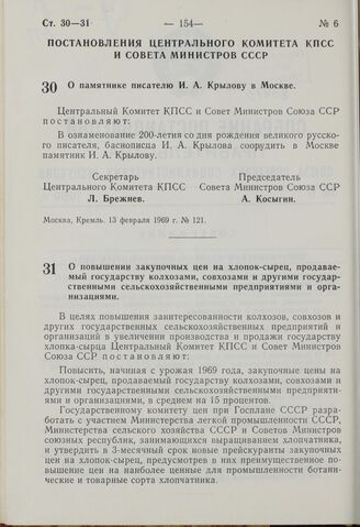 Главная Собрание законов и распоряжений правительства РСФСР и СССР Собрание законов и распоряжений Рабоче-Крестьянского Правительства ... Собрание постановлений правительства СССР за 1969 г. № 1-26 Документы Постановление Центрального Комитета КПСС и Совета Министров СССР. О...