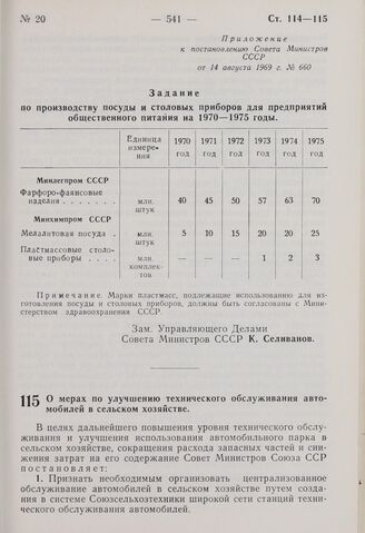 Постановление Совета Министров СССР. О мерах по улучшению технического обслуживания автомобилей в сельском хозяйстве. 14 августа 1969 г. № 675