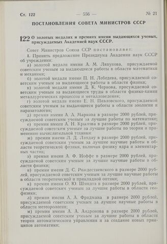 Постановление Совета Министров СССР. О золотых медалях и премиях имени выдающихся ученых, присуждаемых Академией наук СССР. 25 августа 1969 г. № 684