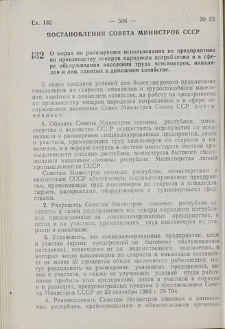 Главная Собрание законов и распоряжений правительства РСФСР и СССР Собрание законов и распоряжений Рабоче-Крестьянского Правительства ... Собрание постановлений правительства СССР за 1969 г. № 1-26 Документы Постановление Совета Министров СССР. О мерах по расширению использо...