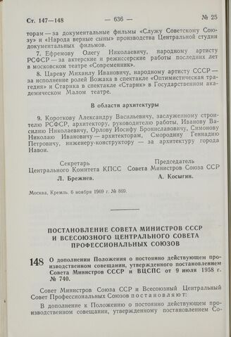 Постановление Совета Министров СССР и Всесоюзного Центрального Совета Профессиональных Союзов. О дополнении Положения о постоянно действующем производственном совещании, утвержденного постановлением Совета Министров СССР и ВЦСПС от 9 июля 1958 г. ...