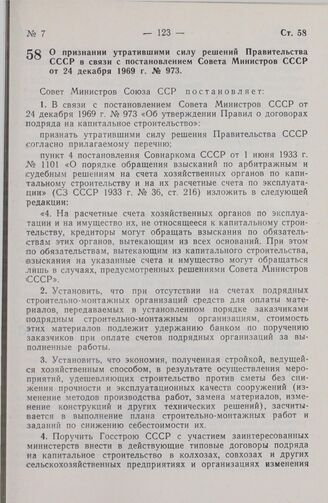 Постановление Совета Министров СССР. О признании утратившими силу решений Правительства СССР в связи с постановлением Совета Министров СССР от 24 декабря 1969 г. № 973. 29 марта 1971 г. № 201