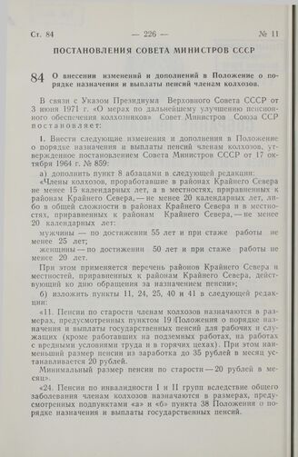 Постановление Совета Министров СССР. О внесении изменений и дополнений в Положение о порядке назначения и выплаты пенсий членам колхозов. 3 июня 1971 г. № 341