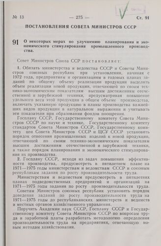 Постановление Совета Министров СССР. О некоторых мерах по улучшению планирования и экономического стимулирования промышленного производства. 21 июня 1971 г. № 413