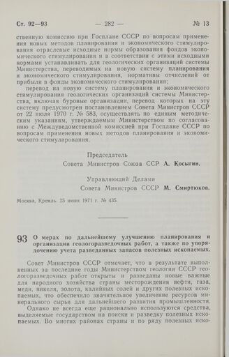 Постановление Совета Министров СССР. О мерах по дальнейшему улучшению планирования и организации геологоразведочных работ, а также по упорядочению учета разведанных запасов полезных ископаемых. 25 июня 1971 г. № 438