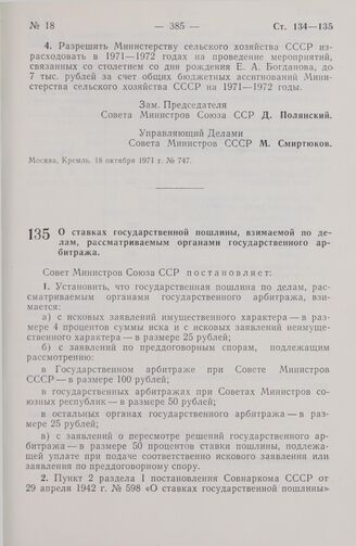 Главная Собрание законов и распоряжений правительства РСФСР и СССР Собрание законов и распоряжений Рабоче-Крестьянского Правительства ... Собрание постановлений правительства СССР за 1971 г. № 1-20 Документы Постановление Совета Министров СССР. О ставках государственной пошл...