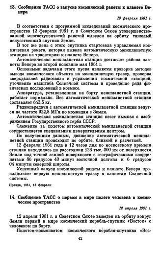 Главная СССР и космос Борьба СССР за мирное использование космоса. 1957-1985. Т. 1 Документы Сообщение TACС о запуске космической ракеты к планете Венера. 13 фе...