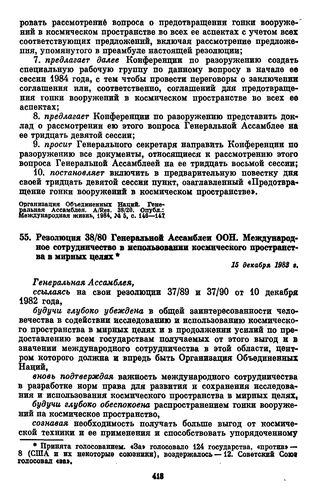 Главная СССР и космос Борьба СССР за мирное использование космоса. 1957-1985. Т. 2 Документы Резолюция 38/80 Генеральной Ассамблеи ООН. Международное сотрудниче...