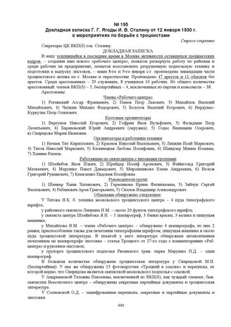 Докладная записка Г.Г. Ягоды И.В. Сталину от 12 января 1930 г. о мероприятиях по борьбе с троцкистами. № 44190