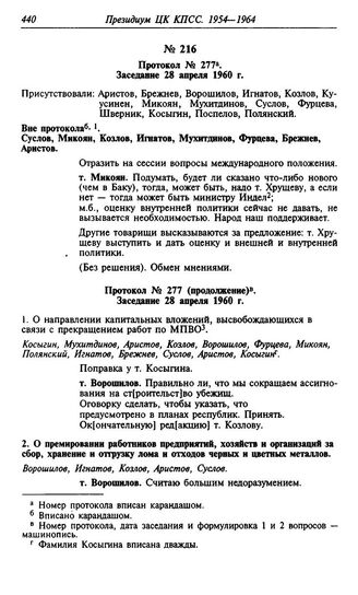 Протокол № 277 (продолжение). Заседание 28 апреля 1960 г.