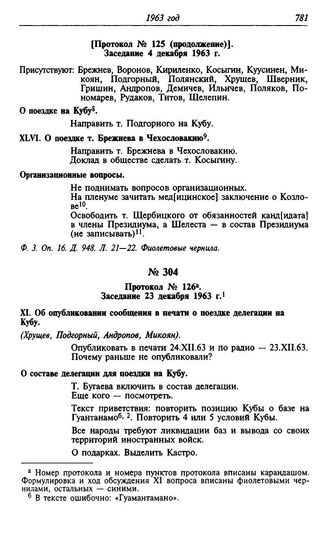 Протокол № 126. Заседание 23 декабря 1963 г. // Ф. 3. Оп. 16. Д. 948. Л. 23—25. Л. 23 — фиолетовые чернила, л. 24—25 — синие чернила.