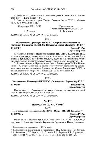 Протокол № 102 от 20 июля. Постановление Президиума ЦК КПСС «Вопрос ЦК КП Украины». 20 июля 1957 г.