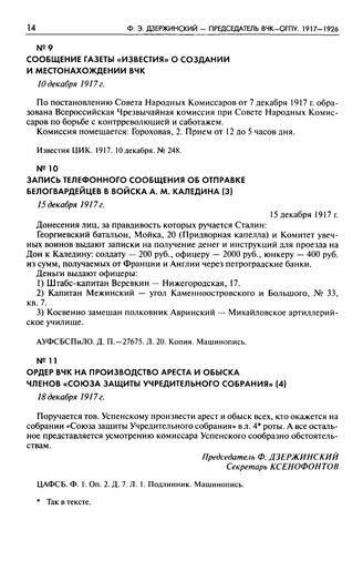 Главная Серия «Россия. XX век. Документы» Ф.Э.Дзержинский — председатель ВЧК—ОГПУ. 1917—1926 Сообщение газеты «Известия» о создании и местонахождении ВЧК. 10 де...