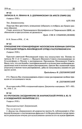 Из протокола заседания ВЧК об анархистской группе А.Ю. Ге и осведомителе Филиппове. 9 апреля 1918 г. // ЦАФСБ. Ф. 1. Оп. 2. Д. 2. Л. 63. Копия. Машинопись.