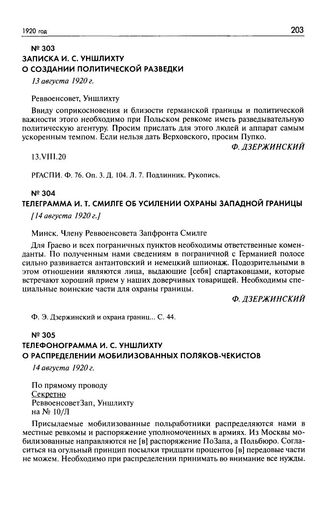 Записка И.С. Уншлихту о создании политической разведки. 13 августа 1920 г.