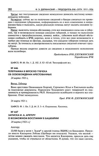 Записка И.А. Апетеру о возможном восстании в Башкирии. 24 марта [1921 г.]