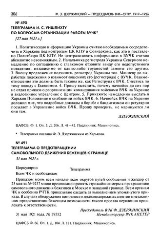 Телеграмма о предотвращении самовольного движения беженцев к границе. 31 мая 1921 г.