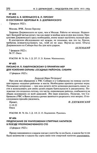 Письмо И.П. Павлуновскому о принятии мер для усиленияохраны «осадных районов» Сибири. 11 февраля 1922 г. // РГАСПИ. Ф. 76. Оп. 3. Д. 119. Л. 15. Подлинник. Рукопись.