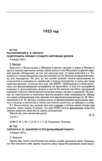 Главная Серия «Россия. XX век. Документы» Ф.Э.Дзержинский — председатель ВЧК—ОГПУ. 1917—1926 Распоряжение В.Л. Герсону подготовить справку о работе карточных до...