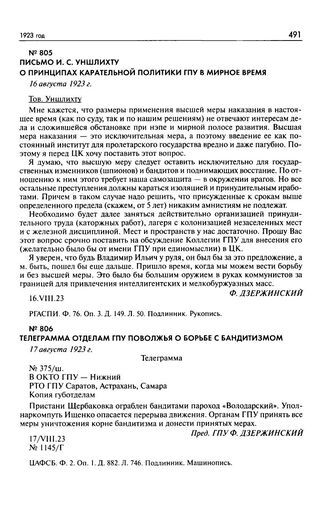 Телеграмма отделам ГПУ Поволжья о борьбе с бандитизмом. 17 августа 1923 г.