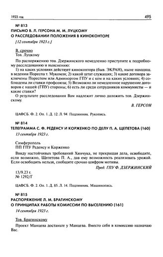 Письмо В.Л. Герсона М.М. Луцкому о расследовании положения в Киноконторе. [12 сентября 1923 г.] // ЦАФСБ. Ф. 2. Оп. 1. Д. 12. Л. 94. Подлинник. Рукопись.