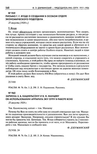 Письмо Г.Г. Ягоде о создании в Особом отделе экономического подотдела. 25 августа [1924 г.]